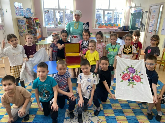 Участие воспитанников подготовительной группы в интерактивной программе татарского и башкирского народных центров ДНК "Урал Батыр" "Жемчужина народного творчества" (сентябрь, 2025)